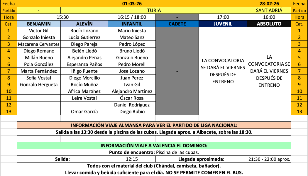 | 01/03/2026 | 15:30 | FNCV | Alevín |
